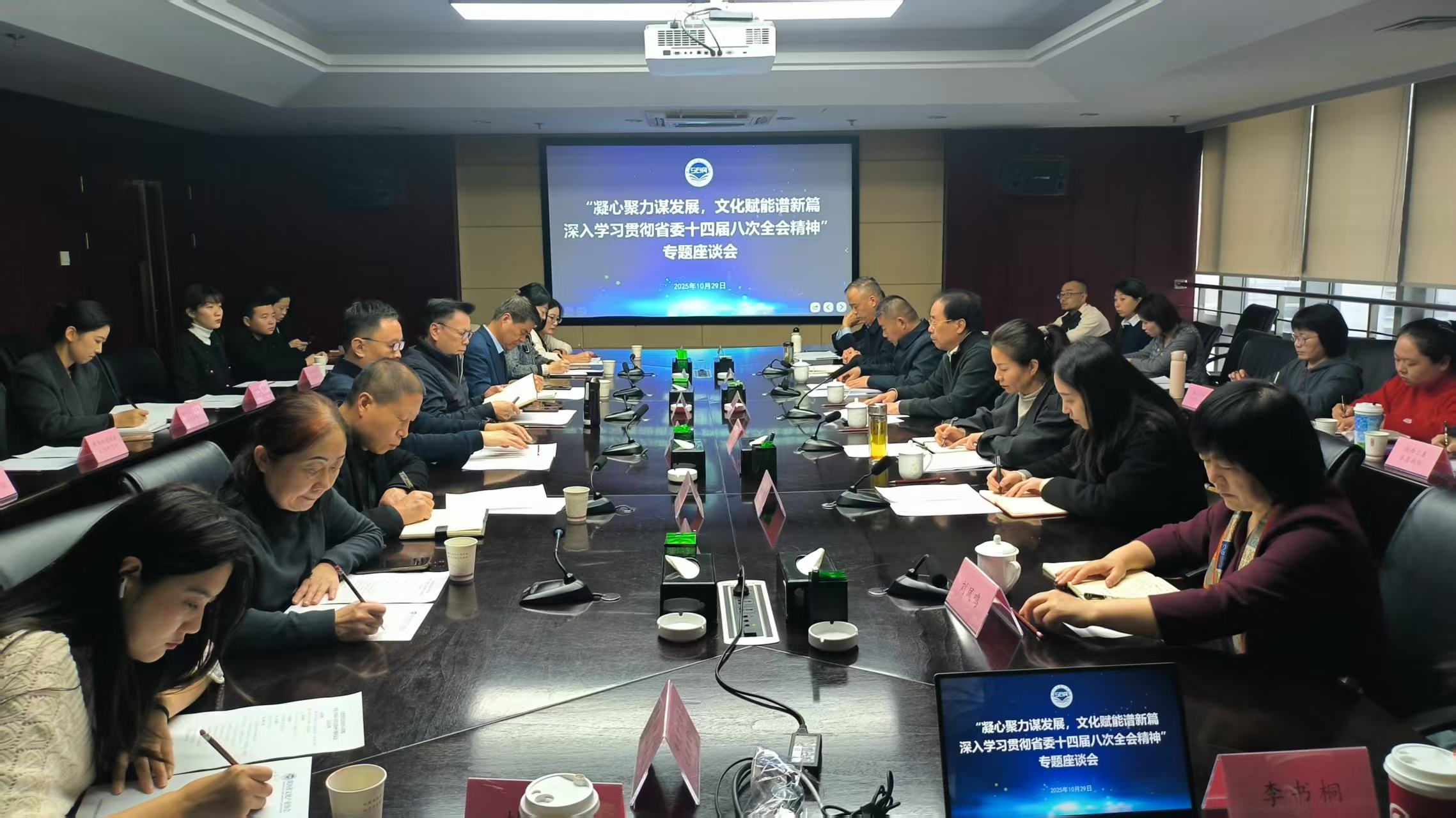 为深入学习贯彻省委十四届八次全会精神,全面落实《中共陕西省委关于加快建设文化强省的意见》部署要求,凝聚全省文化类社会组织共识与力量,2025年10月29日下午,由陕西省文化产业协会主办的“凝心聚力谋发展,文化赋能谱新篇——深入学习贯彻省委十四届八次全会精神”专题座谈会在陕文投集团B座会议室成功举办。