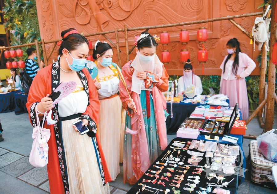 端午节是我国的重要传统节日,也是我国首个入选世界非遗的节日,具有广泛而深远的文化影响力。这次活动积极适应常态化防疫的要求,突出“文明健康有你有我、公筷公勺、文明餐桌”等文明主题,引导大家过一个传统、文明的节日。活动现场,百余位身着唐、宋、明等不同朝代汉服的美女们,聚集在胡姬酒肆、古风古韵的市集摊贩前,一时间这里人声鼎沸,众人仿佛走进了《长安十二时辰》里最繁华的市井生活。汉服美女们手举公筷公勺、文明餐桌、科学防疫等宣传牌,从隐市门庭起步巡游,在古老的“集市”点燃了现代文明与千年文化相约融合的故事。
